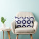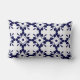 Stylish modern accent pillow features a modern geometric floral pattern in navy blue and white color palette, a rich elegant pattern with blue floral designs on a white background that is bound to compliment any coastal or Hamptons style decor or add a splash of trendy design to any room in your home.