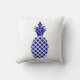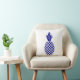 This stylish pillow features a navy blue pineapple on a crisp white background. The reverse of the pillow is solid navy.