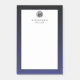 Modern stylish notepad with a brushed metallic silver monogram. Custom name or custom text presented on a simple white background, framed by a gradient border in trendy shades of navy blue. Personalize using the fields provided or use the 'message' button to contact the designer for help.