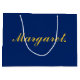 Make gift-giving extra special with this large navy gift bag, personalized with your name for a unique touch. Perfect for birthdays, holidays, or any special occasion, it combines style and practicality. Crafted from durable materials, this bag ensures your gifts are secure while adding a sophisticated, custom flair.