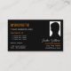 Stylish Orange Black with Monogram Logo and Photo Business Card