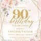 Stylish Pale Pink Gold Glitter Floral 90th Invite