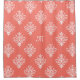 Stylish Peach Coral Damask Pattern With Monogram Shower Curtain
