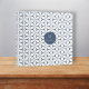 Stay organized in style with our modern and stylish three ringed binder. Featuring a beautiful blue geometric pattern on a white background, this binder is the perfect accessory for your office or school needs. Personalize it with your own monogram, adding a touch of uniqueness to this simple yet elegant design. Keep your documents neatly organized and make a statement with this fashionable binder.