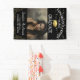 A stylish 'Congratulations to our Graduate' door banner, featuring a photo of the student, on a black background that can be changed to any color, string twinkle lights, gold glitter corners, a gold graduation cap and text that can easily be customized.