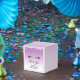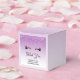 A favor box (tiny size - 2 inch x 2 inch) with a trendy stylish design. The background is a purple gradient color with an image of fake sparkling glitter dripping down from the top. A pair of girly cute eyelashes underneath the glitter image.