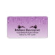 Address labels with a trendy stylish design. The background is a purple gradient color with an image of fake sparkling glitter dripping down from the top. A pair of girly cute eyelashes underneath the glitter image.