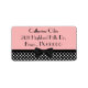 Stylish address labels, with solid pink, on the top, and black with white polka dots, on the bottom. Graphics of a black line bordering the background with a black bow decorates the middle. Black text is ready to personalize for yourself or your business needs.
