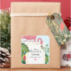 Kitchen stickers with a cute and whimsical pink flamingo. Surrounded by green tropical leaves, and red and yellow hibiscus flowers. A square gold gradient frame in the center.