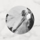 Custom-designed wedding table confetti featuring "we do" and "love" in modern elegant hand calligraphy. Personalize with bride and groom's wedding photo, names, and wedding date. Perfect for decorating wedding reception, rehearsal dinner, and engagement party tables.
