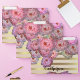 This is a customizable file folder that beautifully marries the charm of nature with modern design. The upper part of the folder is adorned with a cluster of blooming peonies, rendered in delicate shades of pink and purple. The intricate detailing of the flowers gives them a lifelike appearance, adding a touch of romantic allure to the design. Contrasting the floral elements, the lower part of the folder features horizontal stripes in gold and white. These sleek lines lend a contemporary flair to the folder, providing a modern contrast to the soft, romantic peonies. Adding a personal touch to the design is the elegantly scripted name “Catherine” at the bottom center of the folder. Written in a sophisticated black cursive font, it indicates the personalization options available with this design. This blend of artistic print and personalization makes this file folder not just a functional item, but a unique expression of personal style.