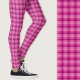 Stylish pink plaid geometric patterned leggings