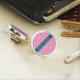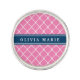 Stylish Pink Trellis Pattern Navy Blue Nameplate Pin