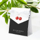 This Cute Pretty Red Cherries Black and White Wedding Favor Box features an elegant, modern design with a chic illustration of two vintage red cherries on a stylish white background. At the bottom, there's a simple, classic black and white design with minimal, clean white typography on a black background. Perfect for weddings, summer birthdays with a rustic chic theme, or fresh fruit-inspired celebrations. It’s a lovely way to offer favors, and the names and date are fully customizable, allowing you to replace them with your own personal details!