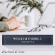 This classic name plate creates a professional look in the office. Its simple design blends traditional and modern typefaces for a sophisticated, minimalist aesthetic. Personalize the template with your name, and job title. This sleek design is perfect for many different professions, including Corporate & Executive Roles, Business Consultants, Entrepreneurs, Small Business Owners, Legal Professions, and more. Printed colors: blue-black and white.
