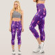 These feminine, modern capri leggings have a stylish, colorful design featuring a vibrant pink to purple floral | botanical pattern on a plain purple background. They are a great choice for sports, running, yoga or for everyday wear.
