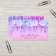 Elegant floral business card design for a makeup artist, event planner, hairstylist, florist, nail technician, beautician and more. The product features faux purple dripping glitter, blue roses, and elegant calligraphy font.