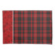 Stylish plaid pillow case with the traditional red, black, and white Cunningham clan Tartan pattern. A red and black circle pattern, with a white border, decorates the hem, on the end of the case.