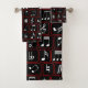 Stylish Red Black and White Geometric Music Notes Bath Towel Set