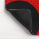 Decorate your desk at work or home with this stylish mouse pad done in a red with tiny black polka dot pattern. A large round black circle, in the bottom left corner of the mat has a large red one letter monogram. Personalize the letter for yourself or as a great gift idea.