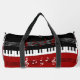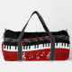 Stylish Red Black White Piano Keys and Notes Duffle Bag