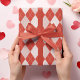 This stylish Valentine's Day wrapping paper features an elegant large scale argyle pattern with red and blush pinks and white dotted lines.
