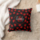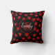 stylish Red heart pattern on black Custom monogram Throw Pillow