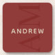 This stylish red coaster features a modern layout with vertical monogram in big type, and your name in simple prominent horizontal type.