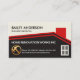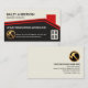 At the top of the card lies your prestigious name and job title. Just below the roof line is the business name followed by a gold hammer logo you can use. Beside the hammer logo are the contact details and a slogan caption option. Change the caption remarks to the slogan to suit your own service needs.