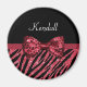 Stylish Red Zebra Print FAUX Glitz Bow With Name Magnet