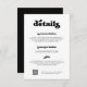 Wedding guest information card: don't forget this useful card with all your important wedding details like accommodation, transportation and gifts, with your QR code to redirect your guests to your website. A retro chic theme: adopt this slightly vintage and stylish typographic design for your wedding stationery, with a classic black and white theme. Customizable text colors and backgrounds.