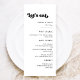 Let's eat! Wedding or reception party menu. A retro chic theme: adopt this slightly vintage and stylish typographic design for your wedding stationery, with a classic black and white theme. Customizable text, colors and backgrounds.