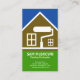 A simple cover accentuated by a brown home with white outlines. In the middle of the home is a roller brush just finishing the painting works. Beside the brush are two elegantly painted white windows. Above the home is a bright blue sky. A green lawn at the base of the card has all your details. Your name and job title lie at the top alongside the contact details.