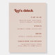 Let's Drink: wedding drinks menu. A retro chic theme: adopt this vintage and stylish typographic design for your wedding stationery, with a peach pink color theme. Easy to mix and match with our similar stationery available in burnt orange, terracotta & brown sugar. Fully customizable text colors and backgrounds.