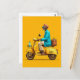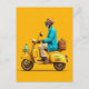 A vibrant artwork featuring an elderly man riding a classic yellow scooter against a bold yellow backdrop. Dressed in a turquoise blazer, striped turban, and trendy sunglasses, he exudes style and adventure. Perfect for modern, retro, and travel-inspired designs.
