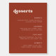 Wedding Dessert Bar menu sign. A retro chic theme: adopt this vintage and stylish typographic design for your Wedding stationery, with a terracotta color theme. Easy to mix and match with our similar stationery available in peach pink, rust orange & brown sugar. Fully customizable text colors and backgrounds.
