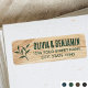Stylish return address labels featuring a printed woodgrain texture, bold lettering, and a leaf branch motif. A perfect choice if you're looking for a rustic, natural or handcrafted vibe. It's easy to personalize the template with your name and address. Ideal for individuals, couples, families or businesses, these custom labels add a personal touch to your letters and packages. Perfect for invitations, weddings, parties, holiday gatherings and more! Design colors: light wood grain and dark green lettering. Shop the collection for more popular product ideas for sale online featuring the same woodgrain design.