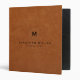 Stylish Professional Monogram Brushed Metallic Gold Monogram Emblem Name Title Custom Text Office Aged Sable Brown Leather Print Background Home Office Professional Work 3 ring binder