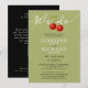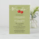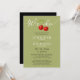 Stylish Sage And Red Cherries And QR Code Wedding Invitation