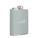 Elegant Minimalist Modern Sage Green Monogram Name Script Signature Custom Personalized Flask. Featuring first name in a pretty hand lettering swash tail font calligraphy (or typography) on sage green or dusty green color background. These are easy to customize it. Great stylish feminine bachelorette party gift, housewarming gift, also for Bachelorette Party, birthday, mother’s day, sweet 16 birthday party, wedding, bridal shower party, for graduation party and It’s for the girl who loves unique stylish things.