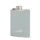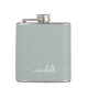 Elegant Modern Minimalist Sage Green Monogram Name Script Signature Custom Personalized Flask. Featuring first name in a pretty hand lettering swash tail font calligraphy (or typography) on sage green or dusty green color background. These are easy to customize it. Great stylish feminine bachelorette party gift, housewarming gift, also for Bachelorette Party, birthday, mother’s day, sweet 16 birthday party, bridal shower party, wedding, for graduation party and It’s for the girl who loves unique stylish things.