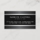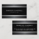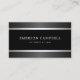 Elegant, black and gray, professional business cards or personal profile cards with your name and title/company name printed on the front. At the top and bottom are printed satin gray and silver gradient borders. White and gray text. On the back are customizable template fields for name, title/company name/specialty and contact information. A minimal, classy and modern design. Great for an attorney, lawyer, accountant etc
