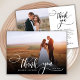 Modern Elegant Chic Boho Calligraphy Script Wedding 2 Photo Thank You Card. Stylish wedding thank you template featuring a full vertical photo on the front with the text "Thank You" in a whimsical swirly hand lettering typography script swash tail font white overlay on the picture and a reverse side one (1) photo and pre-made thank you message. 2-sided card with 2 photo. Easily to personalize your name and thank you message. If you prefer to handwrite your note, just delete the sample text to make more space. If You need help or matching item, please contact to me!