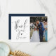 wedding thank you card with elegant black stylish script and a thank you message to your guests. The image can be personalized.
