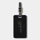 Modern black luggage tag with faux gold script name and swash. Name and address can be added on the back.