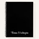 Modern black notebook with your monogram name in a stylish white script.