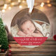 Elegant Stylish Trendy Script My First Christmas Baby Photo Red Ornament with Snowflakes back
