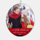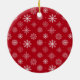 Elegant Stylish Trendy Script Our First Christmas Couple Photo Red Ornament with Snowflakes back
