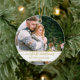 Elegant Stylish Trendy Script Our First Christmas Couple Photo Gold and White Ornament