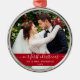 Elegant Stylish Trendy Script Our First Christmas Wedding Photo Red Ornament